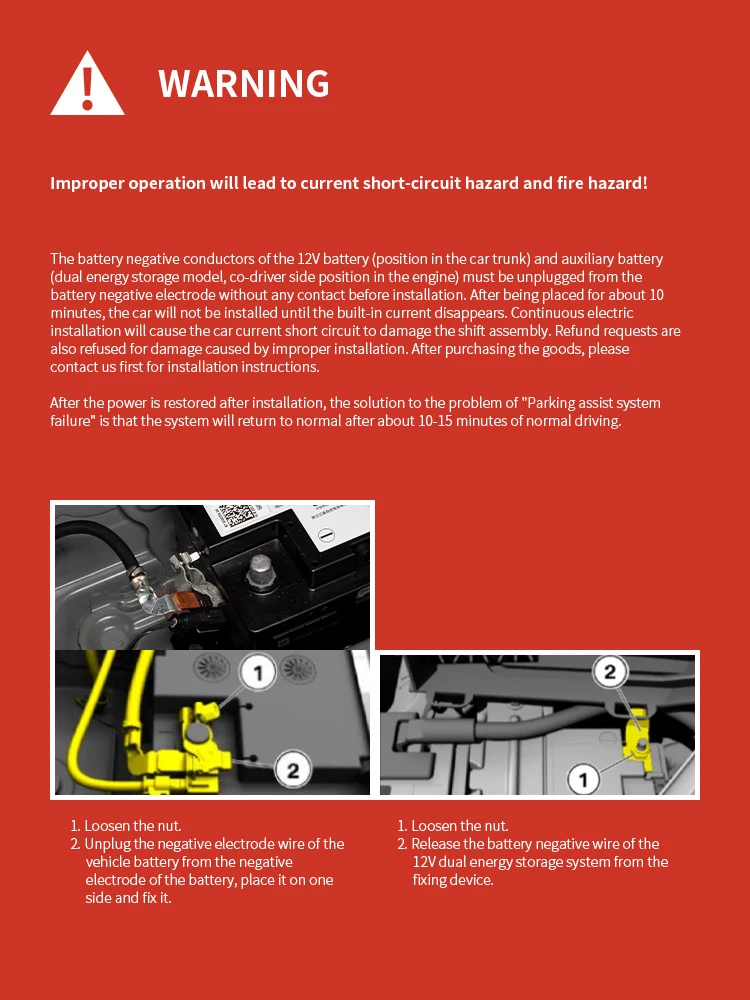 3.Installation should see the instruction manual, can not operate without permission.The negative electrode of the battery in the trunk must be cut off before installation.Otherwise, it will cause damage to the car.(some cars have 2-3 battery)